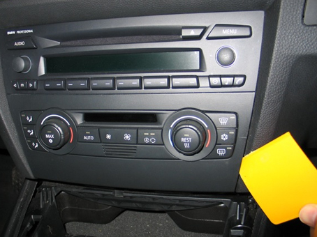 To remove the factory radio, use a large flat blade trim tool and gently release the aircon unit below directly under the radio