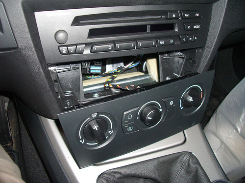 Undo the 2 torx screws securing the radio in place, once removed the radio will be free to fully remove